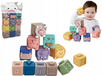 Miękkie Klocki Sensoryczne Edukacyjne Gryzaki Zwierzątka 12szt Sześciany